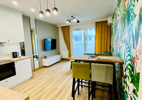 Apartamenty Białe nad jeziorem Białym enjoys a location in Augustów, a 16-minute walk from Augustow Train Station and 9.5 miles from Augustów Primeval Forest. Both free Wifi and parking on-site are available at the apartment free of charge. The apartment also offers facilities for disabled guests. The units at the apartment complex come with air conditioning, a seating area, a flat-screen TV with streaming services, a kitchen, a dining area, and a private bathroom with a hair dryer, a walk-in shower, and free toiletries. A dishwasher, a fridge, and stovetop are also provided, as well as a coffee machine and a kettle. At the apartment complex, all units are fitted with bed linen and towels. Guests at Apartamenty Białe nad jeziorem Białym will be able to enjoy activities in and around Augustów, like cycling, hiking, and walking tours. Outdoor play equipment is also available for guests at the accommodation. Marina Augustow is 1.3 miles from Apartamenty Białe nad jeziorem Białym, while The Augustów Canal is 1.6 miles away. The nearest airport is Olsztyn-Mazury Airport, 106 miles from the apartment.