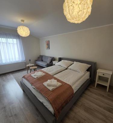 A recently renovated apartment, Apartamenty Emilia 3 offers accommodation in Gniezno. Guests staying at this apartment have access to free Wifi. The rooms include a kettle and a private bathroom with a shower and a hair dryer, while selected rooms also offer a fully equipped kitchen. At the apartment complex, the units include bed linen and towels. Poznań-Ławica Henryk Wieniawski Airport is 38 miles from the property.