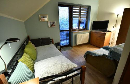 Featuring quiet street views, Apartamenty i Pokoje Kordeczki in Rabka-Zdrój features accommodations, a garden, and barbecue facilities. This property offers access to a patio and free private parking. Guests can make use of the children's playground or the picnic area, or enjoy views of the mountain and garden. At the apartment complex, all units are equipped with a wardrobe. Each room has a coffee machine, a flat-screen TV, a safety deposit box, and free Wifi, while some rooms have a terrace and some have city views. At the apartment complex, each unit has a private bathroom and bed linen. A continental breakfast is available at the apartment. A mini-market is available at the apartment. Guests at Apartamenty i Pokoje Kordeczki will be able to enjoy activities in and around Rabka-Zdrój, like walking tours. Skiing, cycling, and hiking are possible within the area, and the accommodation offers ski storage space. Bania Thermal Baths is 19 miles from Apartamenty i Pokoje Kordeczki, while Zakopane Railway Station is 24 miles from the property. John Paul II International Kraków–Balice Airport is 47 miles away.