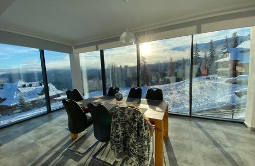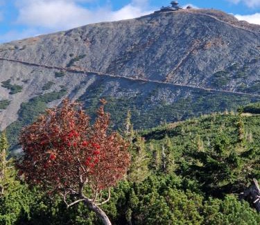 Featuring a garden, Apartamenty KADO offers accommodations in Karpacz. This property offers access to a balcony, free private parking, and free Wifi. Dinopark is 16 miles away and Szklarska Poreba Bus Station is 17 miles from the apartment. Offering a terrace and mountain views, the spacious apartment includes 2 bedrooms, a living room, cable flat-screen TV, an equipped kitchen, and 1 bathroom with a walk-in shower. Guests can enjoy a meal on an outdoor dining area while overlooking the garden views. This apartment is non-smoking and soundproof. Guests can make the most of the warm weather with the property's barbecue facilities. During the colder months, guests can enjoy winter sports in the surrounding area. The apartment also has outdoor fireplace and a picnic area for a day outdoors. Wang Church is a 14-minute walk from the apartment, while Western City is 5.2 miles away. Copernicus Wrocław Airport is 72 miles from the property.
