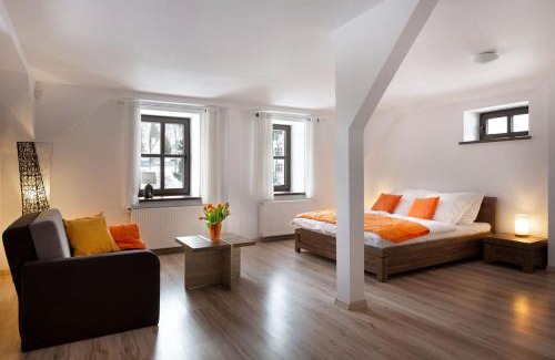 Apartamenty KAPRYS offers accommodations in Duszniki Zdrój, 7.9 miles from Polanica Zdroj Train Station and 8.8 miles from Kudowa Zdrój Train Station. This apartment provides free private parking, private check-in and check-out, and free Wifi. The apartment has private entrance. The apartment provides guests with a terrace, garden views, a seating area, satellite flat-screen TV, a fully equipped kitchen with a dishwasher and a microwave, and a private bathroom with shower. A toaster, a fridge, and stovetop are also provided, as well as a coffee machine and a kettle. At the apartment complex, every unit includes bed linen and towels. Guests at Apartamenty KAPRYS will be able to enjoy activities in and around Duszniki Zdrój, like walking tours. Skiing, cycling, and hiking are possible within the area, and the accommodation offers ski storage space. Errant Rocks is 10 miles from Apartamenty KAPRYS, while The Grandmother's Valley is 20 miles away.