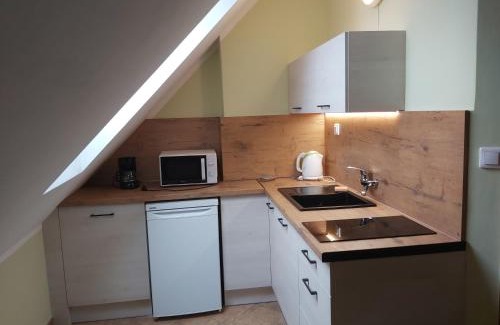 Apartamenty Liliowy Zakątek offers accommodations in Dębki, a 4-minute walk from Dębki Beach and 31 miles from Train Station. With city views, this accommodation features a patio. The guest house provides rooms with air conditioning, free private parking, and free Wifi. The units come with tiled floors and feature a fully equipped kitchenette with a microwave, a dining area, a flat-screen TV with streaming services, and a private bathroom with shower. A fridge, a stovetop, and kitchenware are also featured, as well as a coffee machine and a kettle. At the guest house, all units have a seating area. A mini-market is available at the guest house. Gdańsk Lech Wałęsa Airport is 46 miles away.