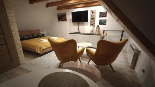 Apartamenty Pod Lipą enjoys a location in Lutowiska, 17 miles from Tarnica and 19 miles from Chatka Puchatka. Housed in a building dating back to 2019, this apartment is 12 miles from Krzemieniec and 16 miles from Polonina Carynska. There's an outdoor fireplace and guests can access free Wifi and free private parking. Overlooking the mountain, rooms in this apartment are accessible via private entrance and comprised of a flat-screen TV and a private bathroom with a walk-in shower and a hair dryer. A toaster, a fridge, and kitchenware are also offered, as well as a kettle. The rooms are equipped with heating facilities. The apartment has a picnic area where you can spend the day outdoors. Polonina Wetlinska is 21 miles from the apartment, while Bieszczady National Park is 12 miles from the property.