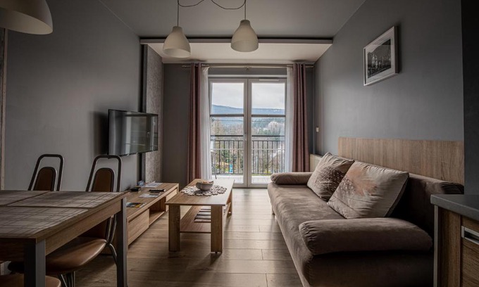 Located within 200 metres of Izerska Railway and less than 1 km of Szklarska Poreba Bus Station in Szklarska Poręba, Apartamenty Villa Mountain View provides accommodation with free WiFi, seating area and flat-screen TV. Opening to a terrace with city or mountain views, all units at the apartment are fitted with a kitchen with a fridge and a dishwasher. A microwave and stovetop are also featured, as well as a coffee machine and a kettle. A children's playground is available on site and both skiing and cycling can be enjoyed within close proximity of Apartamenty Villa Mountain View. Dinopark is 2.4 km from the accommodation, while Death Turn is 3 km away. The nearest airport is Copernicus Wrocław Airport, 122 km from Apartamenty Villa Mountain View.