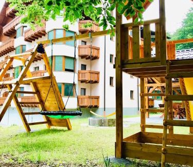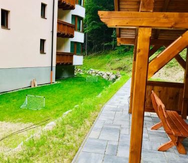 Providing a garden, Apartmán 16 Romantika Chopok Juh Tále provides accommodations in Tale. This property offers access to a balcony, free private parking, and free Wifi. On clear days, guests can head outside to enjoy the apartment's outdoor fireplace or simply kick back and relax. Offering a terrace and mountain views, the spacious apartment includes 2 bedrooms, a living room, satellite flat-screen TV, an equipped kitchen, and 1 bathroom with a walk-in shower. Towels and bed linen are featured in the apartment. For added privacy, the accommodation has a private entrance and soundproofing. Guests may eat at the on-site family-friendly restaurant, which is open for dinner, lunch, brunch, and cocktails. For guests with children, the apartment offers outdoor play equipment. Skiing and cycling can be enjoyed nearby, while ski-to-door access and ski storage space are also available on-site. Chopok mountain is 5 miles from Apartmán 16 Romantika Chopok Juh Tále. Poprad-Tatry Airport is 52 miles away.