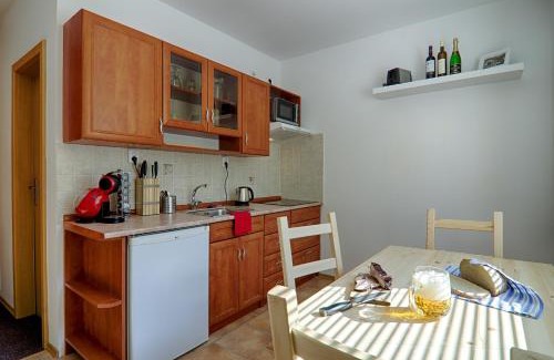 Apartmán Borůvka offers accommodations in Pec pod Sněžkou, 8.4 miles from Bus Stop Strážné and 22 miles from Western City. This apartment offers free private parking, a tour desk, and free Wifi. Wang Church is 26 miles from the apartment. Offering mountain views, this apartment also has a satellite flat-screen TV, a well-equipped kitchen with a microwave, a toaster, and a fridge, as well as 1 bathroom with a shower and a hair dryer. For added privacy, the accommodation features a private entrance. Skiing, cycling, and hiking are possible within the area, and the apartment offers ski storage space. Pardubice Airport is 61 miles away, and the property offers a paid airport shuttle service.