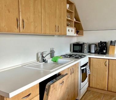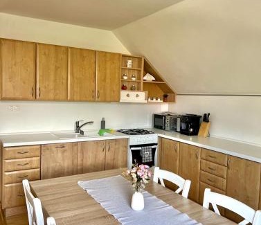 Offering a garden, Apartmán D+D offers accommodations in Zázrivá. This property offers access to a terrace, free private parking, and free Wifi. Water Park Bešeňová is 30 miles away and Likava Castle is 22 miles from the apartment. The apartment consists of 4 bedrooms, a living room, a fully equipped kitchen with a dishwasher and a kettle, and 2 bathrooms with a shower. Guests can enjoy a meal on an outdoor dining area while overlooking the mountain views. For added privacy, the accommodation features a private entrance. Orava Castle is 18 miles from the apartment, while Vlkolinec Village is 29 miles from the property. Poprad-Tatry Airport is 71 miles away.