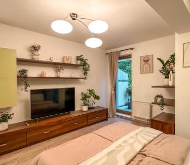 Offering a terrace, Apartmán Kolonádka Luhačovice offers accommodations in Luhačovice. This apartment provides an elevator and free Wifi. Outdoor seating is also available at the apartment. Providing a balcony with city views, this apartment also offers a satellite flat-screen TV, a well-equipped kitchen with a dishwasher, a microwave, and a fridge, as well as 1 bathroom with a shower and a hair dryer. This apartment is allergy-free and non-smoking. Guests can eat at the on-site romantic restaurant, which is open for dinner, lunch, brunch, and cocktails. Guests at Apartmán Kolonádka Luhačovice will be able to enjoy activities in and around Luhačovice, like cycling.