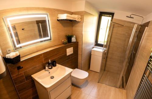 3.5 miles from Bus Stop Strážné in Vrchlabí, Apartmán Mlýn Herlíkovice 205 provides accommodations with access to spa facilities. The apartment, set in a building dating from 2023, is 31 miles from Szklarki Waterfall and 31 miles from Kamienczyka Waterfall. The apartment also features free Wifi, free private parking, and facilities for disabled guests. Providing access to a balcony, the air-conditioned apartment consists of 1 bedroom. Featuring a terrace with river views, this apartment also comes with a satellite flat-screen TV, a well-equipped kitchen with a dishwasher, an oven, and a microwave, as well as 1 bathroom with a shower and a hair dryer. The property has an outdoor dining area. Sightseeing tours are available in the neighborhood. Ski storage space is available on-site, and both skiing and cycling can be enjoyed close to the apartment. Pardubice Airport is 62 miles from the property.