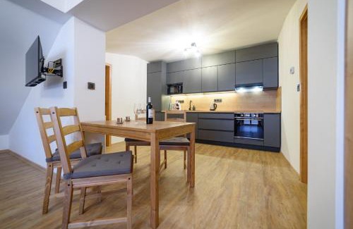 Apartmán na Hůrce is located in Horní Planá, just 15 miles from Lipno Dam and 15 miles from Rotating Amphitheatre. Housed in a building dating from 2023, this apartment is 15 miles from Castle Český Krumlov and 30 miles from Přemysl Otakar II Square. There's a seasonal outdoor pool and guests can use free Wifi and free private parking. Providing a balcony and quiet street views, the apartment includes 1 bedroom, a living room, flat-screen TV, an equipped kitchen, and 1 bathroom with a shower. Towels and bed linen are provided in the apartment. The accommodation is non-smoking. Main Square in Český Krumlov is 17 miles from the apartment, while Black Tower is 30 miles away. Ceske Budejovice Airport is 30 miles from the property.