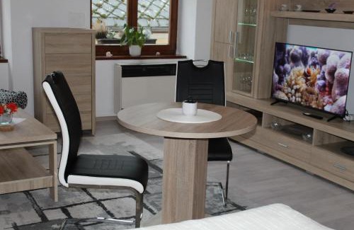 Apartmán Nerudova is located in Česká Lípa, just 26 miles from Zittau Goerlitz University of Applied Sciences and 30 miles from Ještěd. The property is around 11 miles from Aquapark Staré Splavy, 19 miles from Castle Bezděz, and 19 miles from Castle Oybin. With free Wifi, this 1-bedroom apartment offers a flat-screen TV, a washing machine, and a fully equipped kitchen with a dishwasher and oven. Towels and bed linen are offered in the apartment. Additional in-room amenities include wine or champagne. Transporter Bridge is 29 miles from the apartment. Vaclav Havel Prague Airport is 60 miles from the property.