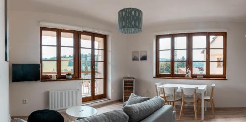 This apartment offers free private parking, an elevator, and free Wifi. Outdoor seating is also available at Apartmán Sjezdovka. Offering a balcony and mountain views, the apartment includes 1 bedroom, a living room, flat-screen TV, an equipped kitchen, and 1 bathroom with a shower. Towels and bed linen are offered in the apartment. This apartment is non-smoking and soundproof. Guests at the apartment will be able to enjoy activities in and around Kašperské Hory, like fishing and hiking. Skiing and cycling can be enjoyed nearby, while a ski equipment rental service, ski-to-door access and a ski pass sales point, are also available on-site. The nearest airport is Ceske Budejovice Airport, 51 miles from Apartmán Sjezdovka.