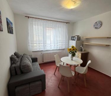 Apartmán u Berušky offers accommodations in Znojmo, 21 miles from Bítov Castle and 22 miles from Krahuletz-Museum. Located around 28 miles from Amethyst Welt Maissau, the apartment is also 28 miles away from Aqualand Moravia. Free Wifi is available throughout the property and Vranov nad Dyjí Chateau is 14 miles away. The apartment is composed of 1 bedroom, a living room, a fully equipped kitchenette, and 1 bathroom. A flat-screen TV is provided. The accommodation is non-smoking. Brno-Turany Airport is 40 miles away.