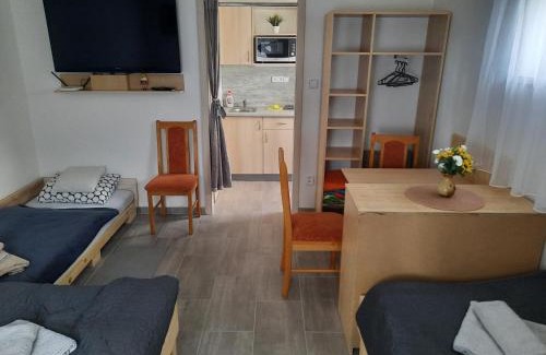 Apartmán u Bouře is located in Zaječí, just 10 miles from Lednice Chateau and 14 miles from Chateau Valtice. This property offers access to a terrace and free private parking. Outdoor seating is also available at the apartment. With free Wifi, this 1-bedroom apartment offers a cable flat-screen TV and a kitchenette with a microwave and fridge. Towels and bed linen are featured in the apartment. For added privacy, the accommodation has a private entrance and soundproofing. Špilberk Castle is 27 miles from Apartmán u Bouře, while Trade Fairs Brno is 28 miles away. Brno-Turany Airport is 26 miles from the property.