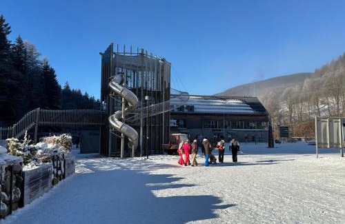 Offering a bar, Apartmán v Koutech features accommodations in Kouty. With free Wifi, this 3-star apartment offers ski storage space. Parking on-site is available, and the apartment also offers bike rental for guests who want to explore the surrounding area. The apartment consists of 1 bedroom, a living room, a fully equipped kitchen with a dishwasher and a kettle, and 1 bathroom with a shower. Towels and bed linen are featured in the apartment. The accommodation is non-smoking. Guests may eat at the on-site family-friendly restaurant, which is open for dinner, lunch, brunch, and cocktails. Skiing and cycling can be enjoyed nearby, while a ski equipment rental service, ski-to-door access and a ski pass sales point, are also available on-site. Museum of Paper Velké Losiny is 6.8 miles from the apartment, while Praděd is 9.4 miles away. Pardubice Airport is 78 miles from the property.