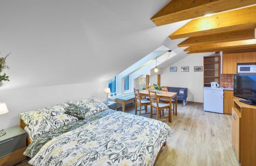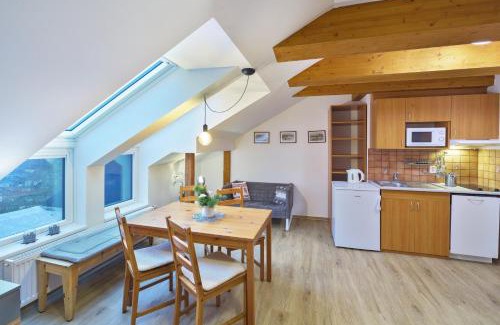 Apartmány Šnek - ať si děti hrají in Benecko provides accommodations with pool with a view, a garden, and barbecue facilities. This condo hotel offers free private parking and a kids' club. The condo hotel has an outdoor fireplace and an indoor pool. Offering a terrace or balcony with views of the mountain and garden, the units feature air conditioning, a seating area, satellite flat-screen TV, and kitchenette. A microwave, a toaster, and fridge are also featured, as well as a kettle. At the condo hotel, the units are fitted with a private bathroom and bed linen. For guests with children, the condo hotel features kids pool, an indoor play area, and outdoor play equipment. Skiing and cycling can be enjoyed nearby, while ski-to-door access and ski storage space are also available on-site. Bus Stop Strážné is 8 miles from apartmány Šnek - ať si děti hrají, while Szklarki Waterfall is 29 miles away. Pardubice Airport is 65 miles from the property.