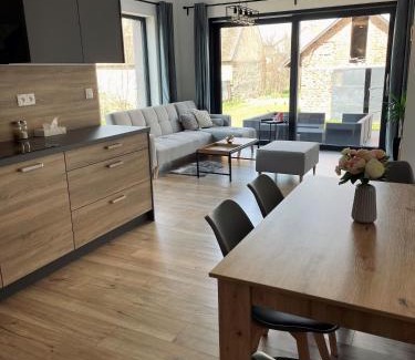 Featuring a garden, Apartmány 400 provides accommodations in Veľká Lomnica. The air-conditioned accommodation is 15 miles from Treetop Walk, and guests can benefit from on-site private parking and complimentary Wifi. Spis Castle is 28 miles away and Bania Thermal Baths is 28 miles from the apartment. Providing a terrace and mountain views, the spacious apartment includes 2 bedrooms, a living room, flat-screen TV, an equipped kitchen, and 2 bathrooms with a walk-in shower and a bath. Towels and bed linen are featured in the apartment. The property has an outdoor dining area. Strbske Pleso is 21 miles from the apartment, while Dobsinska Ice Cave is 24 miles away. Poprad-Tatry Airport is 7.5 miles from the property.