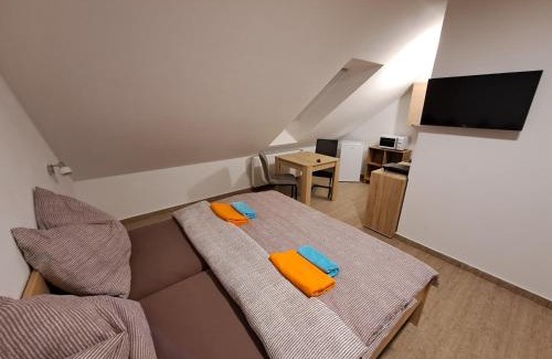 Apartmány Adieu 2 in Třeboň provides accommodations with a garden and barbecue facilities. There's a private entrance at the apartment for the convenience of those who stay. There's a sun terrace and guests can access free Wifi and free private parking. At the apartment complex, every unit is fitted with a wardrobe, a flat-screen TV, a private bathroom, bed linen, and towels. A microwave, a fridge, and stovetop are also available, as well as a kettle. At the apartment complex, every unit includes a seating area. Guests are welcome to eat at the on-site restaurant, which is open for dinner and lunch. You can play table tennis and darts at the apartment, and the area is popular for cycling and hiking. With an outdoor fireplace and a picnic area, this apartment offers plenty of opportunities to unwind. Přemysl Otakar II Square is 18 miles from Apartmány Adieu 2, while Castle Český Krumlov is 30 miles from the property. Ceske Budejovice Airport is 21 miles away.