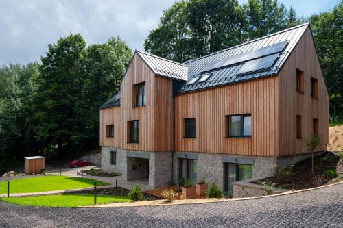 Apartmány Hraničná s privátním wellness in Bedřichov provides accommodations with a garden and barbecue facilities. This condo hotel provides free private parking and luggage storage space. The condo hotel features garden views, a sun terrace, a 24-hour front desk, and free Wifi is available throughout the property. At the condo hotel, every unit comes with a flat-screen TV with streaming services, a kitchen, a dining area, a safety deposit box, and a private bathroom with a shower, bathrobes, and a hair dryer. A dishwasher, an oven, and microwave are also available, as well as a coffee machine and a kettle. At the condo hotel, units include bed linen and towels. Guests at the condo hotel can enjoy a buffet breakfast. There is a snack bar, bar, and lounge. For guests with children, Apartmány Hraničná s privátním wellness offers both an indoor and outdoor play area. Skiing and cycling can be enjoyed nearby, while ski-to-door access and ski storage space are also available on-site. Ještěd is 15 miles from the accommodation, while Szklarki Waterfall is 25 miles from the property. Vaclav Havel Prague Airport is 80 miles away.