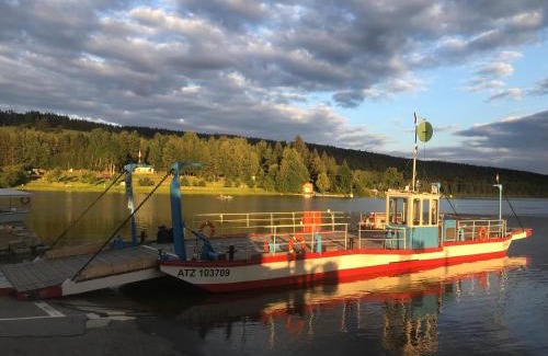 Apartmány Lipno - Frymburk in Frymburk provides accommodations with a seasonal outdoor swimming pool and a garden. This beachfront property offers access to free Wifi and free private parking. Outdoor seating is also available at the apartment. Each unit comes with a sofa, a seating area, a flat-screen TV with satellite channels, a well-equipped kitchen, and a private bathroom with bidet and a bath or shower. A dishwasher, an oven, and microwave are also provided, as well as a kettle. The rooms are equipped with heating facilities. Guests at Apartmány Lipno - Frymburk will be able to enjoy activities in and around Frymburk, like hiking. Skiing and cycling can be enjoyed nearby, while a ski equipment rental service and a ski pass sales point are also available on-site. Castle Český Krumlov is 15 miles from the accommodation, while Přemysl Otakar II Square is 29 miles from the property. Ceske Budejovice Airport is 30 miles away, and the property offers a paid airport shuttle service.