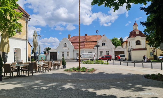 Featuring a garden, Apartmány Modrý deň features accommodations in Bojnice. Guests staying at this apartment have access to a terrace. Free Wifi is available throughout the property and Bojnice Castle is a 6-minute walk away. The air-conditioned apartment is composed of 2 separate bedrooms, a living room, a fully equipped kitchen, and 1 bathroom. A flat-screen TV is offered. The accommodation is non-smoking. Buffet and continental breakfast options with warm dishes, local specialities, and fresh pastries are available. A bicycle rental service is available at the apartment. Kremnica Town Castle is 24 miles from Apartmány Modrý deň. Piesťany Airport is 58 miles from the property.