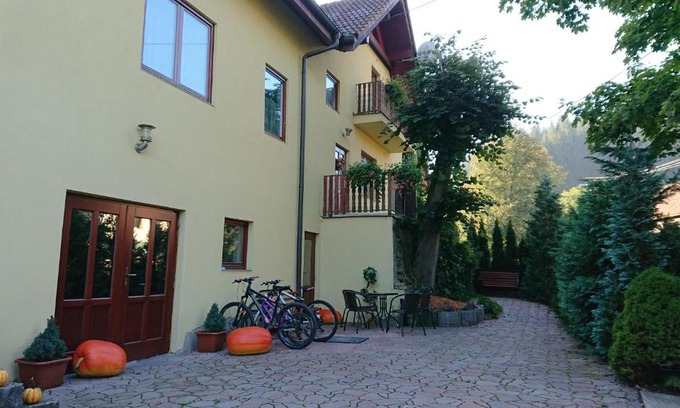 Offering city views, Apartmány Súľov 183 in Súľov features accommodations and a garden. With garden views, this accommodation provides a balcony. The guest house offers mountain views, a sun terrace, and free Wifi is available throughout the property. The units come with parquet floors and feature a fully equipped kitchenette with a microwave, a dining area, a flat-screen TV with satellite channels, and a private bathroom with shower and a hair dryer. There's also a fridge, kitchenware, and a kettle. At the guest house, units are fitted with bed linen and towels. Guests at the guest house will be able to enjoy activities in and around Súľov, like hiking. Skiing and cycling can be enjoyed nearby, while a bicycle rental service and ski storage space are also available on-site. Strecno Castle is 24 miles from Apartmány Súľov 183, while Lietava Castle is 15 miles from the property.