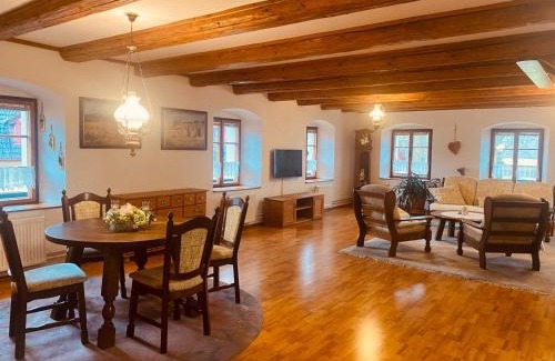 Apartmány Selský dvůr enjoys a location in Třebeň, 26 miles from Colonnade by the Singing Fountain and 26 miles from The Singing Fountain. The property is around a 19-minute walk from Soos National Nature Reserve, 14 miles from Chateau Sokolov, and 18 miles from King Albert Theatre, Bad Elster. Outdoor seating is also available at the apartment. Each unit comes with a sofa, a seating area, a flat-screen TV, a well-equipped kitchen with a dining area, and a private bathroom with free toiletries. An oven, a microwave, and fridge are also featured, as well as a kettle. At the apartment complex, each unit comes with bed linen and towels. Karlovy Vary International Airport is 37 miles away.