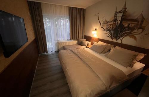 Apartmány Teddy Bojnice offers accommodations in Bojnice, 24 miles from Kremnica Town Castle. Featuring free private parking, the 2-star apartment is a 13-minute walk from Bojnice Castle. On clear days, guests can head outside to enjoy the apartment's outdoor fireplace, or simply kick back and relax. At the apartment complex, every unit comes with a desk and a flat-screen TV. Rooms include a kettle, a private bathroom, and free Wifi, while some rooms are fitted with a terrace and some have garden views. At the apartment complex, units include bed linen and towels. For visitors looking to embark on day trips to nearby landmarks, the apartment features a selection of packed lunches. Guests at Apartmány Teddy Bojnice will be able to enjoy activities in and around Bojnice, like cycling. Outdoor play equipment is also available at the accommodation, while guests can also relax in the garden. Piesťany Airport is 58 miles from the property.