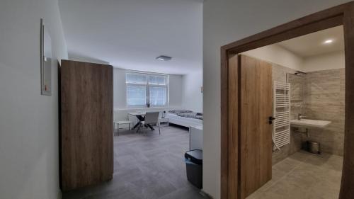 Featuring a bar, Apartmány U Jiříka offers accommodations in Ostrava. The guest house, set in a building dating back to 2022, is 4.4 miles from National Cultural Monument the Lower Vítkovice and 7 miles from Main Train Station Ostrava. The guest house features rooms with air conditioning, free private parking, and free Wifi. Each unit comes with a fully equipped kitchenette with a dining table, a flat-screen TV with satellite channels, and a private bathroom with shower and a hair dryer. There's also a fridge, kitchenware, and a kettle. At the guest house, units include bed linen and towels. Guests are welcome to eat at the on-site family-friendly restaurant, which is open for dinner and lunch. Ostrava Arena is 2.9 miles from the guest house, while Train Station Ostrava-Svinov is 4.7 miles from the property. The nearest airport is Ostrava Leos Janacek Airport, 8.7 miles from Apartmány U Jiříka.