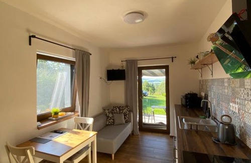 Providing garden views, Apartmány u Matěje in Dolní Morava offers accommodations, a garden, and barbecue facilities. Housed in a building dating back to 2021, this apartment provides free Wifi and free private parking. The apartment has private entrance. The apartment provides guests with a terrace, mountain views, a seating area, a flat-screen TV, a fully equipped kitchen with a dishwasher and a microwave, and a private bathroom with shower and a hair dryer. A toaster, a fridge, and stovetop are also provided, as well as a kettle. At the apartment complex, every unit includes bed linen and towels. Ski storage space is available on-site, and both skiing and cycling can be enjoyed close to Apartmány u Matěje. Museum of Paper Velké Losiny is 20 miles from the accommodation, while Praděd is 31 miles away. Pardubice Airport is 60 miles from the property.