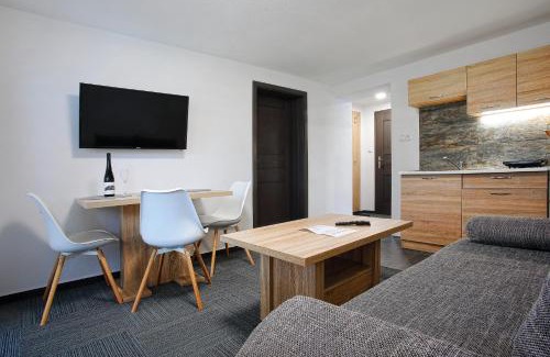 Apartmany za Rohom offers accommodations in Liptovský Mikuláš, 3.4 miles from Demanovská Ice Cave and 4.6 miles from Aquapark Tatralandia. This apartment offers free private parking, free shuttle service, and free Wifi. The property offers a shuttle service and features a garden and picnic area. All units include a seating area, a flat-screen TV with satellite channels, a fully equipped kitchenette, and a private bathroom, while some rooms feature a terrace or a balcony. A microwave, a toaster, and fridge are also featured, as well as a kettle. At the apartment complex, the units are equipped with bed linen and towels. Guests can make the most of the warm weather with the property's barbecue facilities. For guests with children, the apartment provides kids pool and outdoor play equipment. A water park is available on-site, and both skiing and cycling can be enjoyed close to Apartmany za Rohom. Jasna is 8 miles from the accommodation, while Strbske Pleso is 30 miles away. Poprad-Tatry Airport is 34 miles from the property.