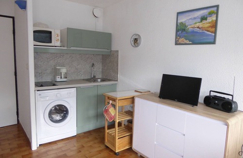 Studio cabin that can accommodate 5 people including 2 children. Residence located 300m from the beach with private pool and parking closed by motorized gate.The apartment located on the 1st floor of the residence exposed to the shelter of prevailing winds and very sunny.It is composed of an entrance with large closet, a cabin equipped with a bed for 2 people (120 bed); 2 bunk beds for one person; a bathroom with bath, sink and wc. The sleeping area is separated from the rest of the apartment by a door to preserve privacy. The living room is equipped with a sofa bed for 2 people; kitchen area with ceramic hob, fridge with freezer, washing machine, serving trolley ; flat screen tv, radio; table plus chairs, sliding window facing south. The beach is very close (max 350m the street which leads there is just in front of the residence. The shops are very close, caterer, bakery, small supermarket, market with local producers. For entertainment, big street entertainment in the evening, craft market in summer; amusement park, golf, minigolf, boat trip., Close to the Spanish border, many walks including a magnificent coastal path. The car is not essential, all shops are on foot, the Argeles / mer station is 4km away with a small train that links to the beach. Phone: 06 84 10 36 69