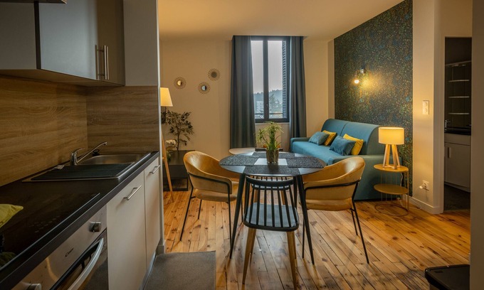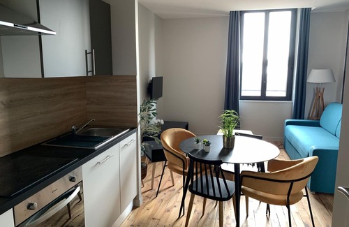 Historically, this former large mansion dating from 1929 has always welcomed people taking the cure, spa guests and holiday makers. In 2019, it was redesigned and completely refurbished to provide you with all the comfort you need for a peaceful stay of a few days or more. This ambitious renovation has taken care to retain the original charm to create a warm and authentic atmosphere. Modern and functional, the 16 apartments, carefully furnished and equipped with air conditioning, can accommodate from one to six people in the best of conditions and offer a real bubble of well-being. In addition, Résidence Plaisance is equipped with a lift and has spacious laundry room. To enhance your stay, if you feel like it, you can enjoy some fresh air in the garden that you will find at the back of the building. The +: - flat screen TV - WIFI - easy parking - welcome and drop off possible at Riom-Châtel Guyon