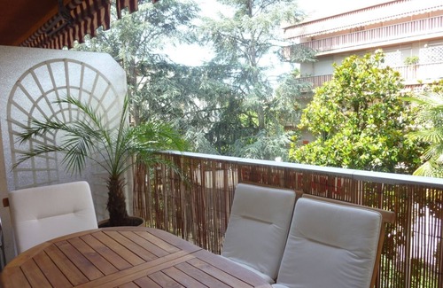 Quiet, in a beautiful landscaped park, this apartment harmoniously decorated and equipped with every comfort and air conditioning, is 10 minutes walk from the sea and 5 minutes from shops. It consists of 3 large rooms of 15 m2 (including a room where you will find a piano), 1 dining-room / lounge, 1 terrace facing west (in front of the living room) and a long balcony side rooms exposed to the east, 1 bathroom and 1 bathroom. 1 equipped kitchen (washing machine, dishwasher, microwave, oven, fridge, freezer) 1wc independent, 1wc in s. d.b. It is equipped with internet. There is a closed garage for a vehicle. For your comfort, you will find full closets (groceries, washing products, breakfasts and toiletries -douche and shampoo).