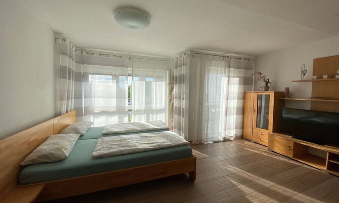 Non smoking apartment 50m² with Sat TV, shower / WC and balcony. Bed linen and towels are provided. The distance to Europa Park is 15 minutes on foot.