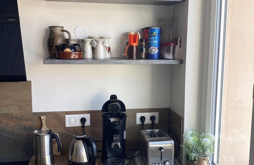 Kitchen: induction hob, extractor, oven, microwave, dishwasher, washer and dryer, Smeg fridge, coffee machine, toaster, kettle, raclette and fondue set