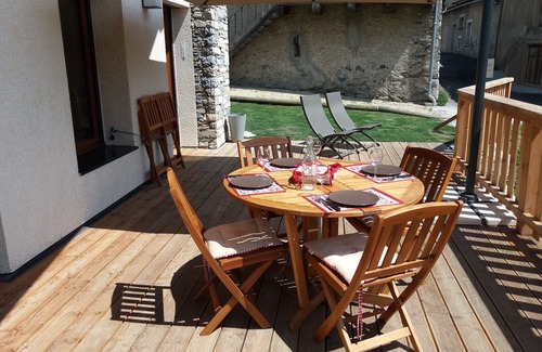 In Val Cenis-Sollières, we welcome you in a new duplex apartment and classified 3 stars (completed in 2016), spacious (72 m², 3 bedrooms) and comfortable for 6 people. This rental was designed with a keen sense of quality: accessibility of the ground floor to people with reduced mobility (PMR), sunny outdoor terrace, wood stove in the living room, use of materials and furniture to both traditional ("mountain touch") and modern. The calm and tranquility are the watchwords of your stay in a remote village of Val Cenis ski area whose access is through inter-village shuttle.