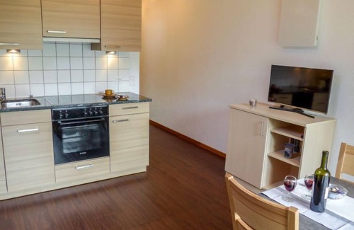 3-room apartment 65 m2. Renovated in 2015, beautiful and cosy furnishings: living/dining room with satellite TV and radio. 1 room with 1 double bed. 1 room with 2 beds. Open kitchen (oven, dishwasher, 4 ceramic glass hob hotplates, electric coffee machine, Capsules for coffee machine (Nespresso) extra, fondue Set (cheese)). Bath/WC. Floor heating. Balcony, south facing position. Terrace furniture. Very beautiful view of the mountains. Facilities: baby cot, hair dryer. Internet (WiFi, free). Parking (1 car). Please note: non-smokers only. Maximum 1 pet/ dog allowed.