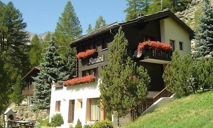 36 m2. More information by the provider: The house Amici is located in a quiet and sunny area off Main Street. Nice lawn with barbecue grill. Nice view of the Mischabel mountains chain. Private parking space.