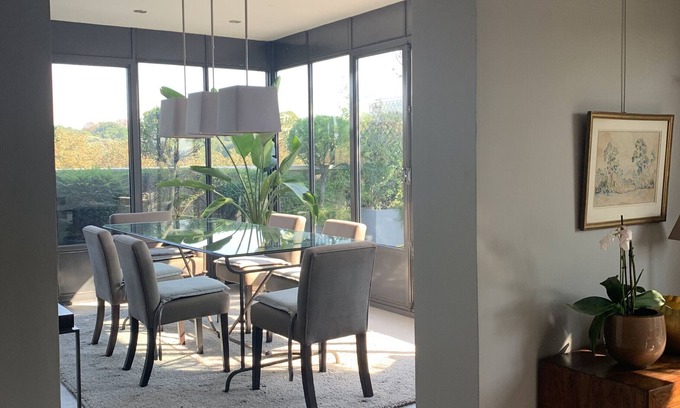 The holiday apartment Appartement Boulogne is located in Boulogne-Billancourt and is the ideal accommodation for a relaxing getaway. The 150 m² property consists of a living room, a well-equipped kitchen, 2 bedrooms and 2 bathrooms as well as an additional toilet and can therefore accommodate 4 people. Additional amenities include Wi-Fi, a TV as well as a washing machine.