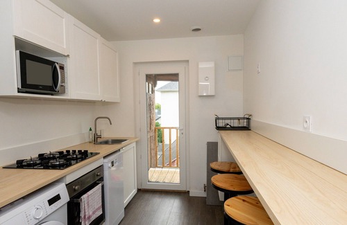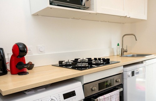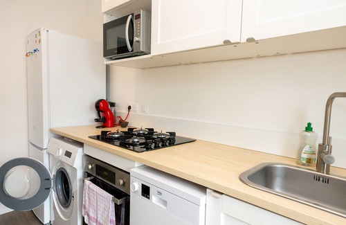 -Living room with furnished lounge (TV, Netflix, and Wi-Fi) and modern fitted kitchen. Dishwasher, washing machine, oven, microwave, hob, kettle, Dolce Gusto coffee machine…