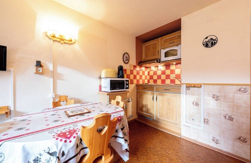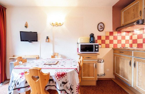 The holiday apartment Appartement au pied des pistes is located in Les Belleville and boasts direct access to the ski slopes. The 24 m² property consists of a living room with a sofa bed for one person, a kitchen, 1 bedroom and 1 bathroom as well as an additional toilet and can therefore accommodate 4 people. Additional amenities include a TV. This accommodation does not offer: Wi-Fi, air conditioning and towels. This vacation rental features a private balcony for your evening relaxation.
