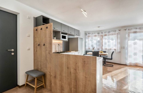 The holiday apartment also boasts a shared open terrace where you can chill out in the evening.