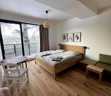 Apartment Corso Harrachov offers accommodations in Harrachov, 11 miles from Szklarki Waterfall and 11 miles from Kamienczyka Waterfall. This apartment offers free private parking, an elevator, and free Wifi. The apartment provides an Italian restaurant. Offering a balcony and mountain views, the apartment includes 1 bedroom, a living room, flat-screen TV, an equipped kitchen, and 1 bathroom with a bidet and a shower. Towels and bed linen are featured in the apartment. The accommodation is non-smoking. Guests at the apartment will be able to enjoy activities in and around Harrachov, like hiking. Skiing and cycling can be enjoyed nearby, while ski-to-door access and ski storage space are also available on-site. Szklarska Poreba Bus Station is 12 miles from Apartment Corso Harrachov, while Izerska Railway is 12 miles away. Pardubice Airport is 71 miles from the property.