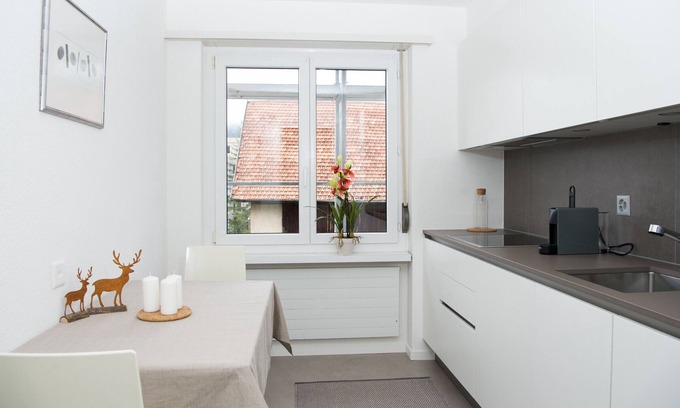 The 2.5 room apartment Crapera is in a beautiful, quiet, sunny and central location. In a 5-minute walk you can reach the shops and the post office. There is also a stop for the free sports bus at the post office, which takes you to the entry points in the ski area. The main street with shops and numerous restaurants invites you to take a leisurely stroll and shop and offers culinary delights for every taste.Lenzerheide also has a lot to offer for cross-country skiing enthusiasts: The cross-country skiing network in the Lenzerheide holiday region stretches from Lantsch/Lenz to Parpan and was recognized by the Swiss Loipen umbrella organization as one of the best areas in Switzerland.In summer, the Heidsee invites you to linger with the water sports center and its unique sandy beach with children's adventure area, but also to an active summer holiday.Living roomThe newly renovated apartment has a living-dining room, a modern kitchen, a bedroom with a double bed and a separate bathroom with a shower. The apartment can accommodate 4 people. Two folding beds are located in the living area.Equipment room/apartmentThe apartment is equipped with everything you need for a relaxing holiday in the mountains of Graubünden. The apartment is modernly furnished, a comfortable seating area and sofa invite you to relax after an eventful day. In the very well equipped kitchen - of course with a dishwasher, oven and coffee machine - you will also find a raclette and fondue set for cozy evenings. The apartment has a separate bathroom with shower and toilet. Bed linen and towels are available in the apartment, as is a hair dryer. You can park your vehicle in a free parking space in the underground car park.Final cleaning, bed linen and towels are included in the rental price. Book your apartment directly with us for the best price.
