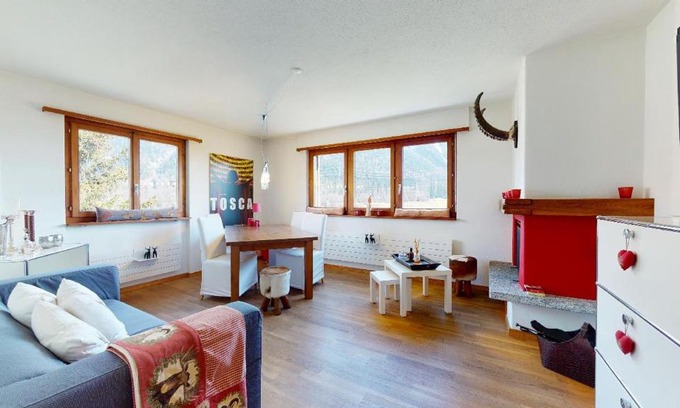 9.1 miles from Train Station St. Moritz in Madulain, Apartment Cuntainta provides accommodations with access to a sauna. The property is around 27 miles from Piz Buin, 29 miles from Public Health Bath – Hot Spring, and 13 miles from Swiss National Park Visitor Centre. Free Wifi is available throughout the property and Engadin Golf Samedan & Zuoz-Madulain is 5.4 miles away. Providing a terrace with mountain views, this apartment also offers a TV, a well-equipped kitchen with a dishwasher, an oven, and a toaster, as well as 1 bathroom with a shower and a hair dryer. There's also a seating area and a fireplace.