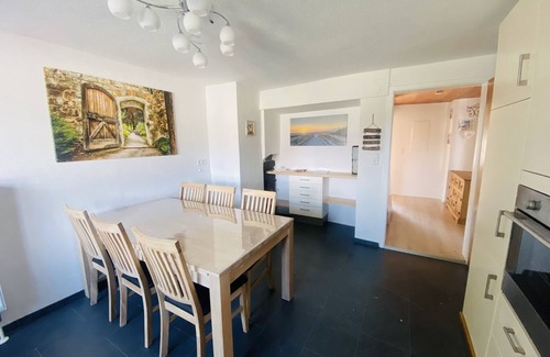 The comfortable holiday apartments Ferienwohnungen Ellenweiler for 15 persons is located in Friedrichshafen in the middle of nature with a view of the orchard meadows. This 200 m² accommodation consists of 2 separate apartments, each with separate entrances. The 100 m² property on the first floor consists of a living room with a sofa bed for one person, a fully-equipped kitchen with dishwasher, 2 bedrooms, and 1 bathroom and can therefore accommodate 5 people. The 100 m² property on the second floor consists of a fully-equipped kitchen, 4 bedrooms (each with TV) and 2 bathrooms and can therefore accommodate 10 people. Additional amenities include Wi-Fi, a washing dryer as well as an ironing board (on request). Furthermore, a table tennis table and a pool table are available on the property. 2 baby cots, 2 high chairs and a baby gate are available on request.