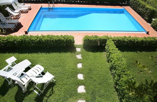 Located on the west coast of Lake Garda, in the locality Moniga del Garda, the residence is situated in a quiet location, away from traffic and close to the historic center. It consists of only 6 units with swimming pool and solarium equipped with umbrellas and sunbeds. Large green areas are the setting of this small and comfortable residence where guests will find tranquility and peace of mind, particularly making it an ideal place for a relaxing holiday. The apartments are spacious three-room apartments on the ground floor with garden-sided or first floor with terrace overlooking the pool. All have a table, chairs and curtains for privacy outdoors. Carefully furnished, they are provided with heating, air conditioning and Tv. Kitchens are complete with stove, dishwasher, oven, fridge freezer and equipped with crockery, kettle and coffee machine '. Bathrooms are equipped with sanitary suspended, hairdryer, toiletries, towels and bedlinen. Each apartment has an underground garage for 2 cars and utility room. In the municipality Garden, a barbeque.