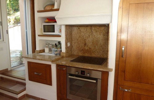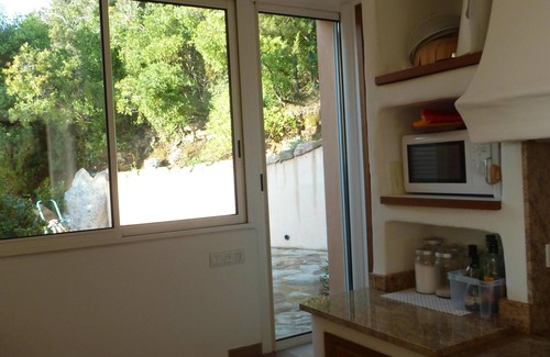The apartment is located in a stone house in Corsican style (only 2 apartments in total) in a quiet location. It has two spacious furnished terraces that invite you to linger and offer a direct view of the sea and the well-kept, 5000 m2 garden on a hillside. Here you can relax.