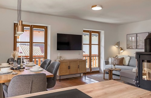 Apartment for 6 - mountain view, balcony, fireplace, cinema, yoga, parking lot | Apartment in Garmisch-Partenkirchen